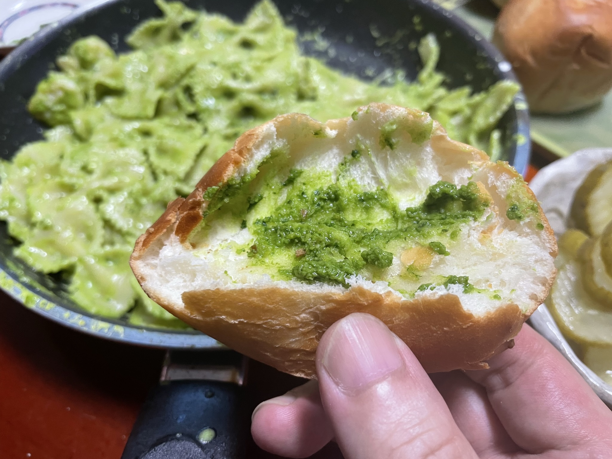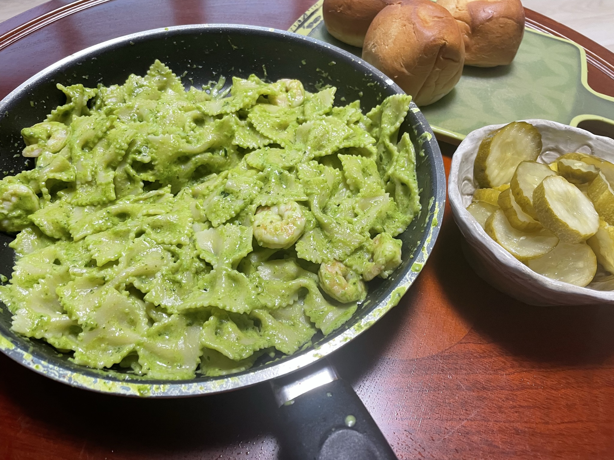 면은 파르팔레. 바질 페스토 넣고 파스타 만들었어요.