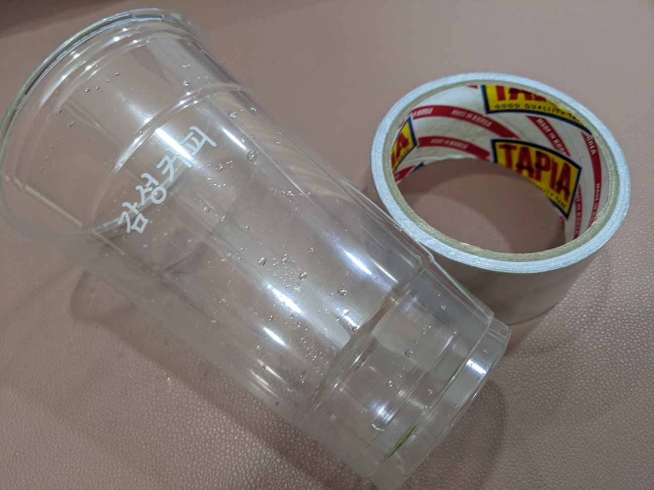 그리고 컵 옆면에 붙였습니다. 아랫면은 나뒀습니다.