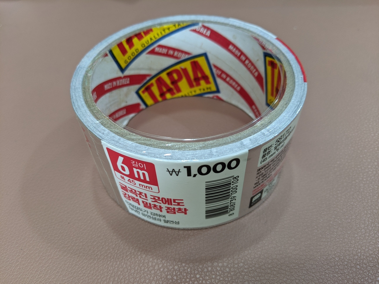 다이소에서 알루미늄 테이프를 구입했습니다. 폭이 45mm 길이 6m 짜리, 1000원이네요.
