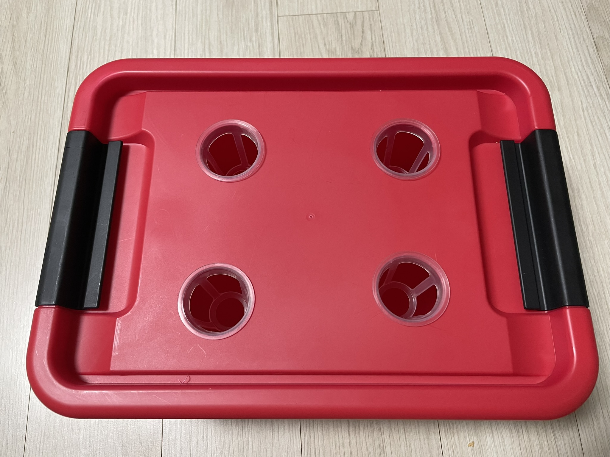 수납박스는 다이소에서 구입할 수 있는 2천원짜리 마블 수납박스. 흰색과 빨간색 중 흰색은 녹조가 잘 끼기에 빨간색을 추천합니다.